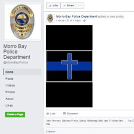 A resident of Morro Bay recently contacted us with concerns about a February 20 posting of a Thin Blue Line Chaplain Cross on the Morro Bay Police Department's official Facebook page (screenshot attached). The posting immediately follows another about the shooting of two Whittier police officers, one of whom was killed.